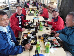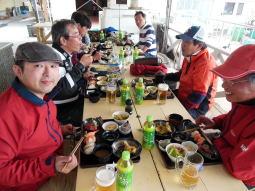 各艇長の判断で、電車、くるま、ヨットと交通手段は別れたが1200に全員集合し、