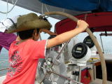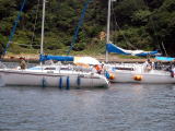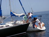 ひっかけた他の艇のアンカーロープからラダーを外す練習をする艇もあった。