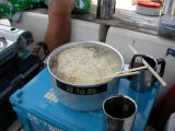 釣り糸を垂れたり、それぞれの艇で手製の料理を楽しんだりした。